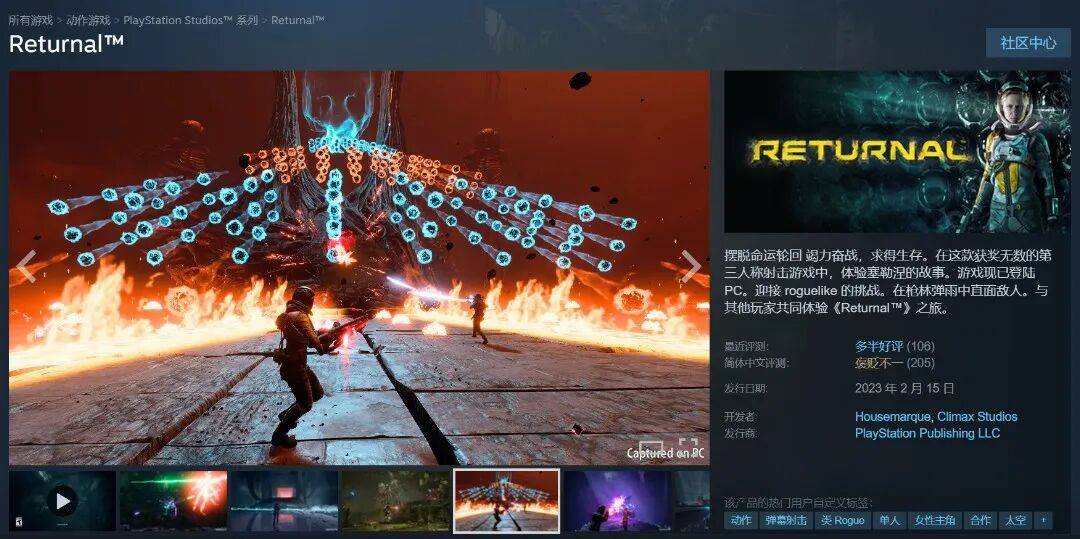这个新时代游戏,就是2021年的《死亡回归(RETURNAL)》。是的,就算有了索尼的投资能做3A了,HM做出来的又是弹幕射击游戏。