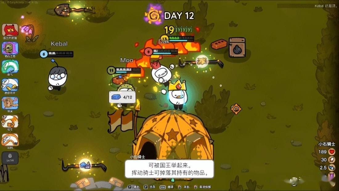 玩家在白天通过采集资源、吃掉武器来获取并升级特性,投入矿石升级基地,为夜晚的防守战做好充足准备。夜幕降临后,则要使出十八般武艺来应对敌人,无论是远战、近战、踢击或是打碎道具,你甚至可以举起并挥舞队友来应对攻击!