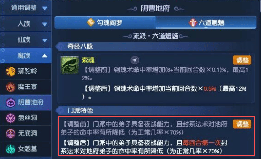 每次改动都会有人笑有人哭,但经过这次四月改动,地府无疑会哭得最大声。以前封系法术对地府的命中率会降低30%,但现在直接修改为“每回合第一次才降低30%”,这意味着,地府在对抗一回合出手2次的门派时,失去了从前的抗封优势。