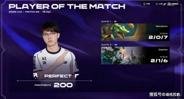 KT和DNS这场比赛就没什么好聊的了,目前DNS的实力完全不足以碰瓷榜一的KT,两局比赛都是很轻松的暴打,第一局甚至出现了玲珑塔的尴尬局面,即便到了第二局DNS挣扎了一番,但最终还是被轻松拿捏。上单PerfecT拿下这场系列赛的POM。