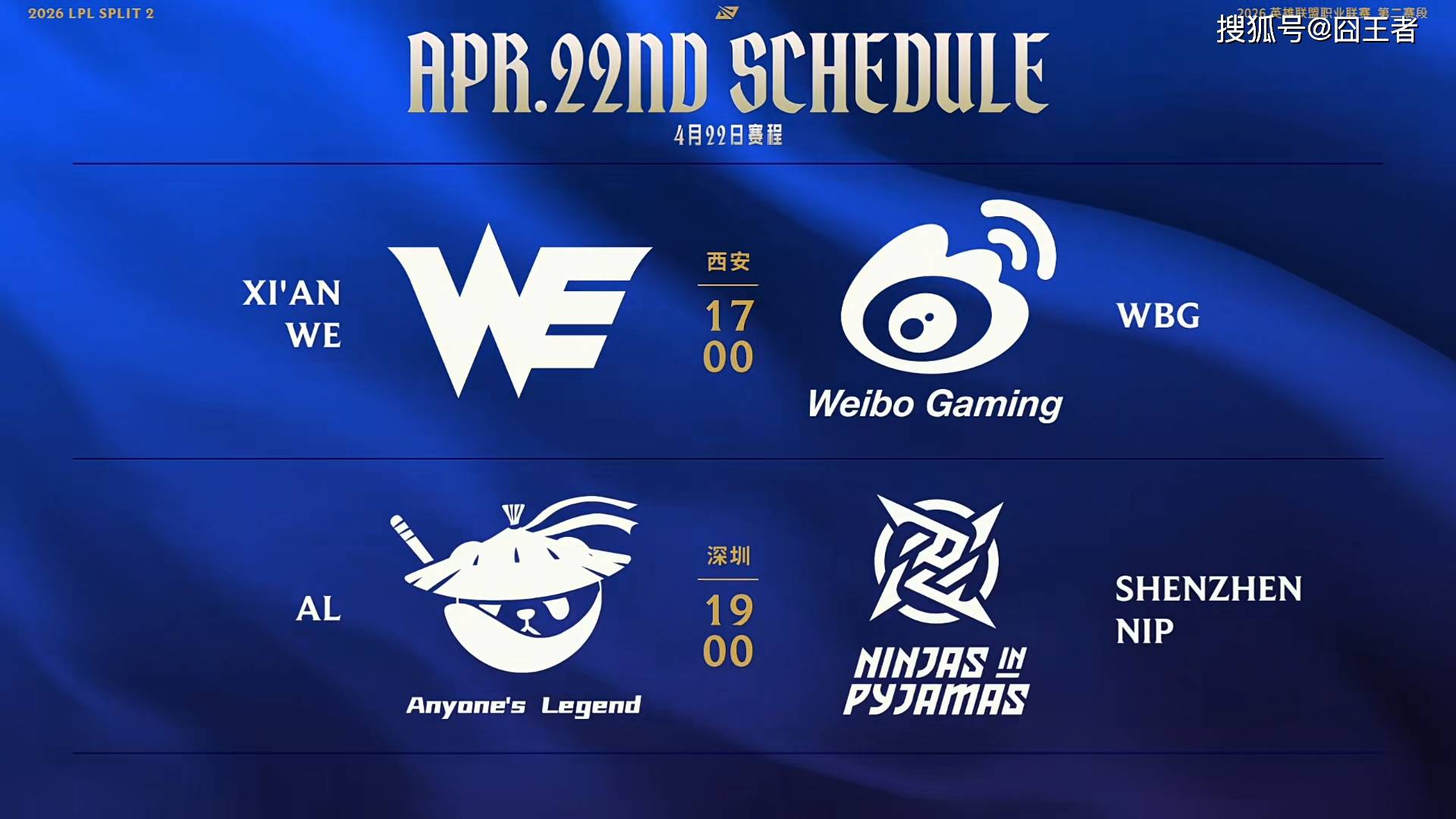 按照赛程,4月22日的比赛,由WE对阵WBG,以及AL对阵NIP组成。在先结束的第一场比赛中,WBG零封WE。那么,AL和NIP,他们谁能获胜,就让赛场来告诉我们吧。