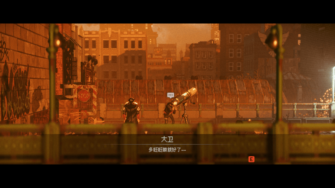 电子游戏的优势恰恰在这里。虚拟镜头可以像现实的机器一样模拟推进、缩放、切换角度,却又不必真正受制于现实拍摄条件。所以能够在游戏中,进行平常电影里无法实现的镜头表达,从而给玩家带有趣的视觉表现。结果便是,表面上看着是像素横版,却具有着电影般的画面观感。