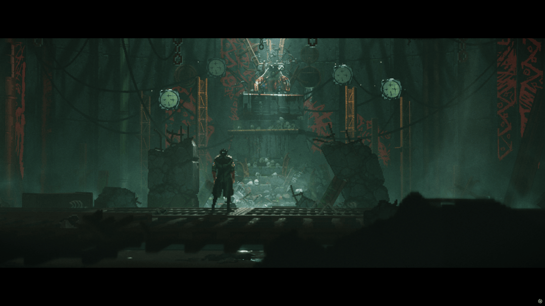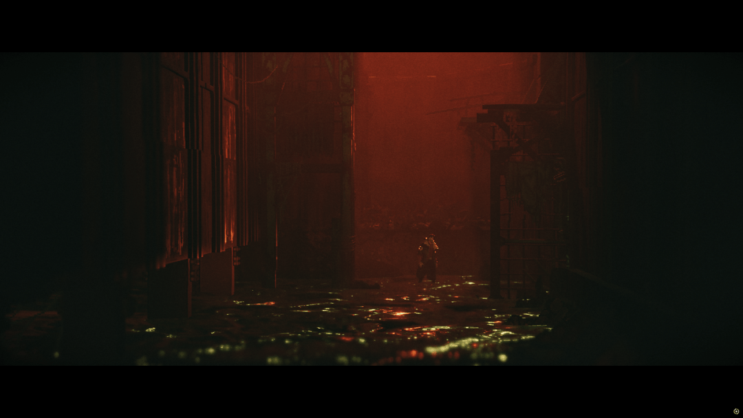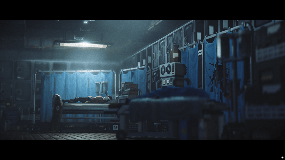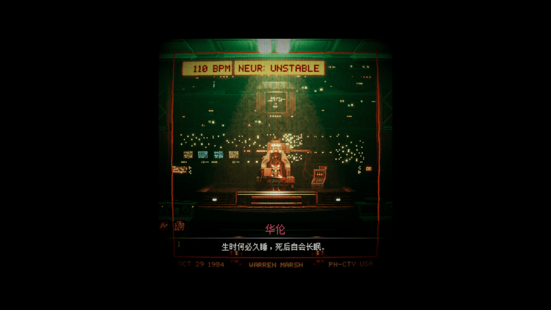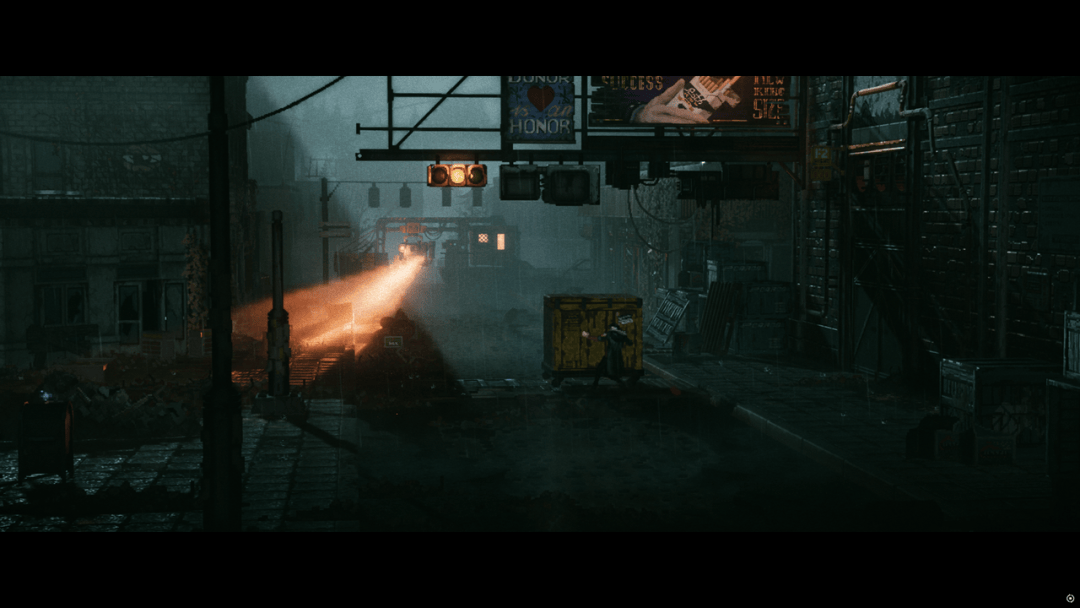 《Replaced》在画面的表现上是最为人称道的,这一点几乎没有太大争议。确实,它在视觉层面确实做出了长板,无论是演出中的镜头调度,还是场景本身的空间组织,都让这部像素风格的平台游戏拥有了比同类作品更强的空间表达。最让人意外的是,它明明是一个横向展开的画面,却并不显得单薄。通过前景、中景和远景分区的布光与遮挡来增加平面纵深感,配合镜头上的推近、拉远,以及景深处理上的情绪变化,许多场景都呈现出一种接近电影化的观看方式。