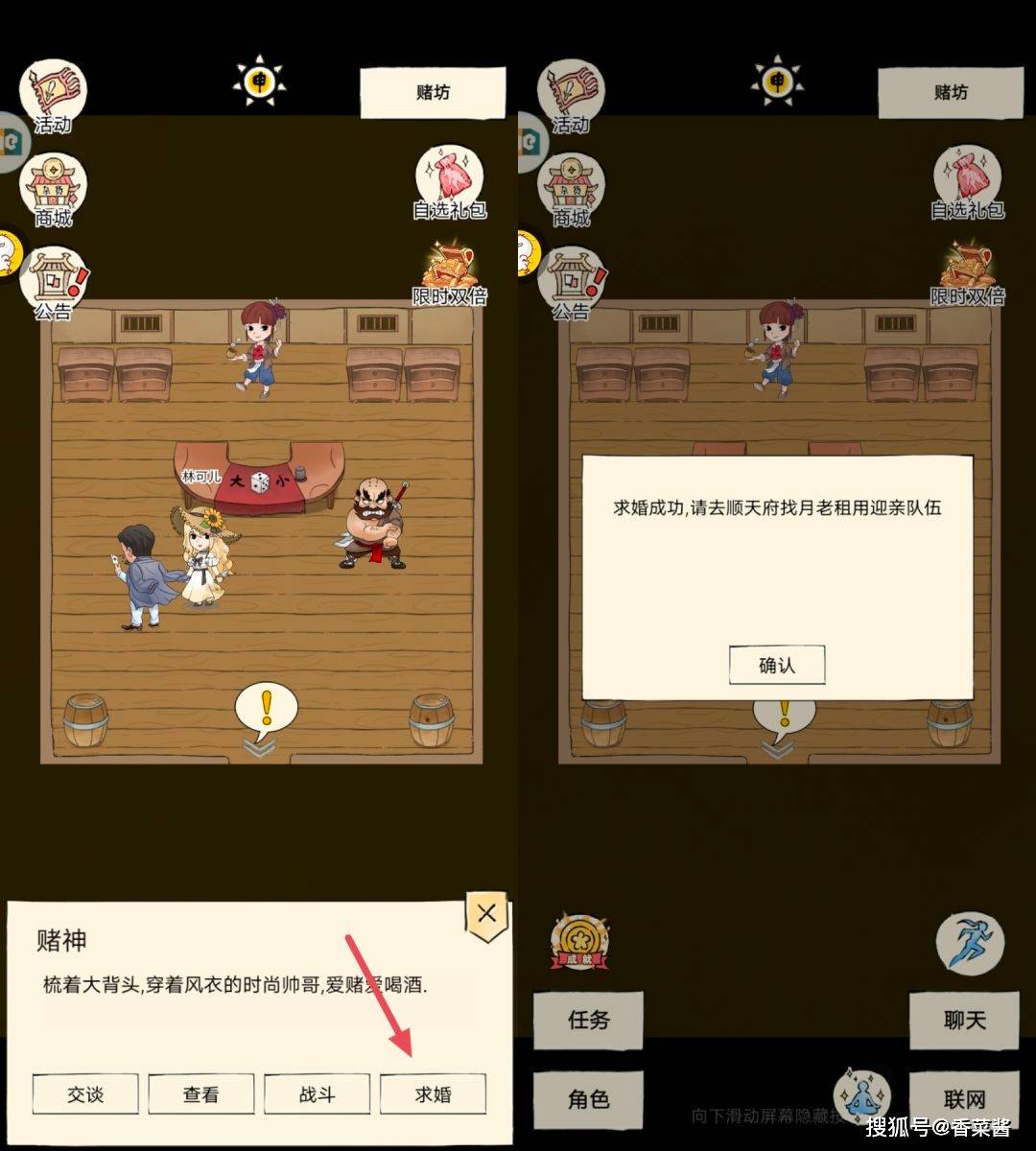 准备好各个道具,满足攻略条件时,靠近目标人物与其对话触发攻略任务~以我的小号赌神举例↓
